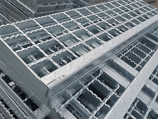 鋼格板踏步一般用在各種平臺(tái)的鋼梯、鋼結(jié)構(gòu)走道等,用扁鋼和橫桿麻花鋼、扁鋼,按一定的間距、交叉點(diǎn)焊接固定。
