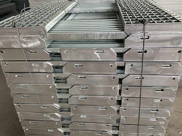 鋼格板踏步一般用在各種平臺(tái)的鋼梯、鋼結(jié)構(gòu)走道等,用扁鋼和橫桿麻花鋼、扁鋼,按一定的間距、交叉點(diǎn)焊接固定。