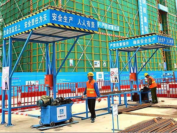 施工鋼筋加工棚是在木工加工場地、鋼筋加工場地等上方有可能掉落物件或處于起重機(jī)調(diào)桿回轉(zhuǎn)范圍之內(nèi),搭設(shè)的雙層防護(hù)棚,用于保護(hù)施工人員。