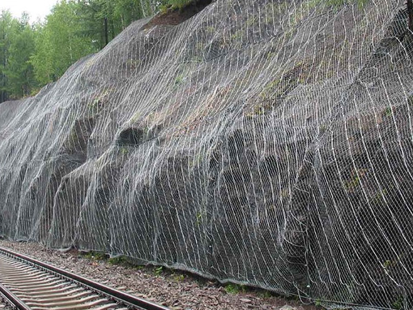 絞索網又名邊坡蜘蛛網,以熱鍍鋅鋼和鋼絲為主要材料的邊坡助護網系統(tǒng),具有高柔性、高防護強度、易鋪展性等優(yōu)點,多用于:公路、地震多發(fā)地段、兩側山體防護、易發(fā)泥石流、限制坡面、巖石的風化剝落破壞、以及預防巖石崩塌等地質災害的防護,絞索網對坡面形態(tài)特征無特殊要求,不破壞和改變坡面原有的地貌和植披條件,同時還給人工綠化保留了必要的條件。