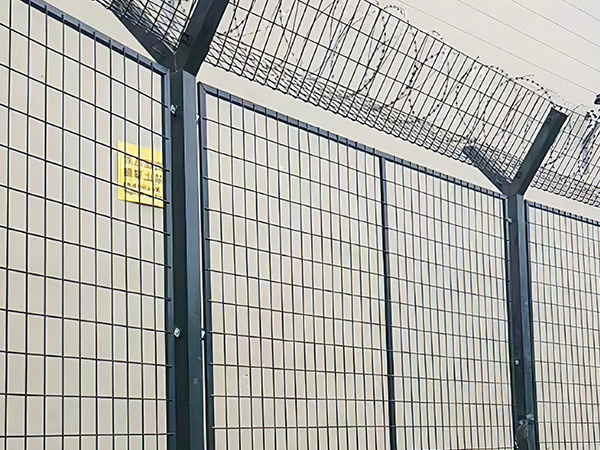 機(jī)場護(hù)欄網(wǎng)又稱作“Y型安全防御護(hù)網(wǎng)”,是由V型支架立柱加強(qiáng)型焊接片網(wǎng),可大大增強(qiáng)護(hù)欄網(wǎng)的抗沖擊力,頂部加裝刀刺滾籠,安全防盜連接件和熱鍍鋅刀片刺網(wǎng)組成強(qiáng)度和安全防御性級(jí)別很高。被廣泛應(yīng)用在機(jī)場,軍事基地等高安全場所。