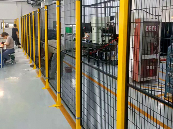 機(jī)器人車間隔離網(wǎng)基材為熱鍍鋅鋼材,起到電化學(xué)保護(hù)作用,由內(nèi)到外防止鋼鐵基材的生銹,表面經(jīng)過酸洗,磷華,再靜電噴涂烤漆,根據(jù)客戶要求可以做精加工,提供無正反面的鋼絲網(wǎng)隔斷,豐富的色彩,良好的裝飾性滿足您個(gè)性化的需求,一次性投入,使用過程中,無需維護(hù),使用壽命15年以上,立柱與地面固定方式:鐵膨脹螺絲固定。