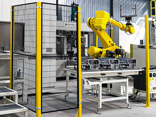 機器人車間隔離網(wǎng)基材為熱鍍鋅鋼材,起到電化學保護作用,由內到外防止鋼鐵基材的生銹,表面經(jīng)過酸洗,磷華,再靜電噴涂烤漆,根據(jù)客戶要求可以做精加工,提供無正反面的鋼絲網(wǎng)隔斷,豐富的色彩,良好的裝飾性滿足您個性化的需求,一次性投入,使用過程中,無需維護,使用壽命15年以上,立柱與地面固定方式:鐵膨脹螺絲固定。