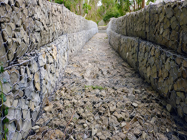 它還能制成箱籠、網(wǎng)墊,用于江河、堤壩及海塘的防沖刷保護(hù),水庫(kù)、河流截流用網(wǎng)箱。河流最嚴(yán)重的災(zāi)害是水流沖刷河岸使其破壞,引發(fā)的洪水泛濫,導(dǎo)致生命財(cái)產(chǎn)遭受大量損失和大量水土流失。因此在處理上述問(wèn)題時(shí)候,該生態(tài)格網(wǎng)結(jié)構(gòu)的應(yīng)用成為很好解決方案之一,它能使河床河岸得到長(zhǎng)時(shí)間保護(hù)。