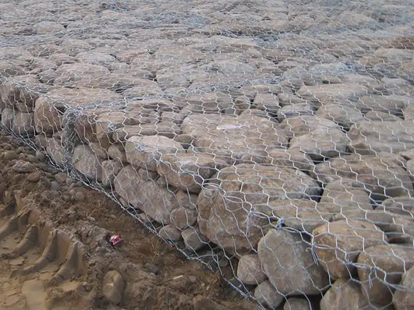 雷諾護(hù)墊也叫石籠護(hù)墊,格賓護(hù)墊,是指由機(jī)編雙絞合六邊形金屬網(wǎng)面構(gòu)成的厚度遠(yuǎn)小于長(zhǎng)度和寬度的墊形工程構(gòu)件。雷諾護(hù)墊中裝入塊石等填充料后連接成一體,成為主要用于水利堤防、岸坡、海漫等的防沖刷結(jié)構(gòu),具有柔性、對(duì)地基適應(yīng)性的優(yōu)點(diǎn)。