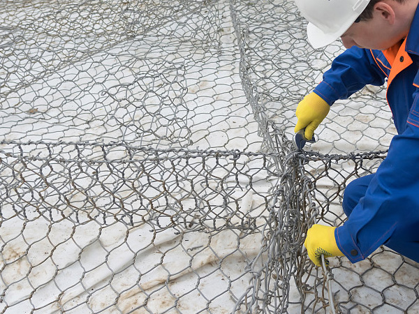 緊固過(guò)程:將雷諾護(hù)墊的邊緣與其他部分用綁絲連結(jié)起來(lái),綁扎的最大間距為300mm有特殊規(guī)格要求,客戶可以向廠方提出,我們會(huì)滿足您的需求。將足夠長(zhǎng)的綁絲沿著邊絲纏繞,可選擇單股或者雙股。我們推薦用鉗子來(lái)組裝,使雷諾護(hù)墊更牢固。