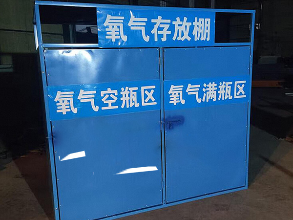 在頂端下方掛藍(lán)底白字的安全宣傳標(biāo)語:危險(xiǎn)品倉庫(乙炔)可根據(jù)要求定做。在門把手兩側(cè)掛藍(lán)底白字:乙炔滿瓶區(qū),乙炔空瓶區(qū)可根據(jù)要求定做。