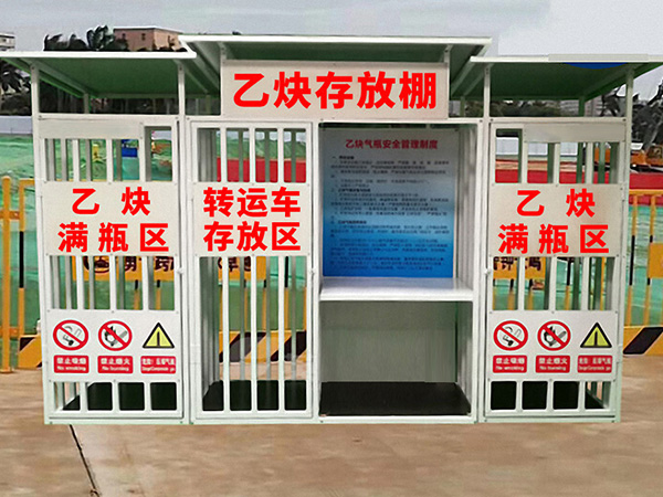 氧氣乙炔存放棚是用于存放建筑施工工地氧氣及乙炔的防護(hù)棚,乙炔氧氣防護(hù)棚可采用方鋼或圓鋼制作,穩(wěn)固安置在混凝土承臺(tái)上。